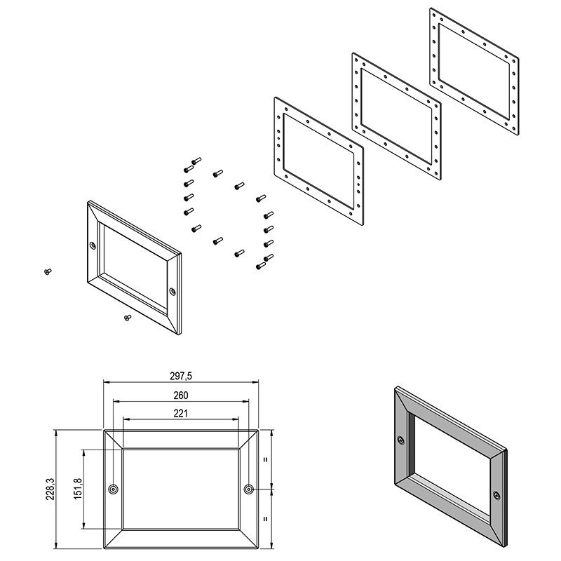 • Embellecedor en acero inoxidable AISI-316L para skimmers en ABS con boca standard AstralPool.