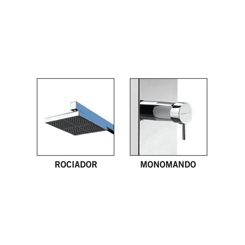 • Dotada de una maneta monomando y un rociador cenital cuadrado antical.