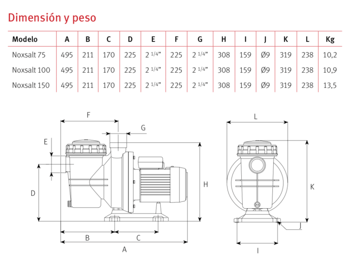 Para abordar esta situación, la línea de bombas de piscina NOXSALT ha sido meticulosamente diseñada para soportar concentraciones de 35-40 gramos por litro. Esto se logra mediante el uso de materiales especiales, como el acero inoxidable Dúplex, que garantiza durabilidad y eficiencia, asegurando un rendimiento óptimo incluso en entornos de alta salinidad.