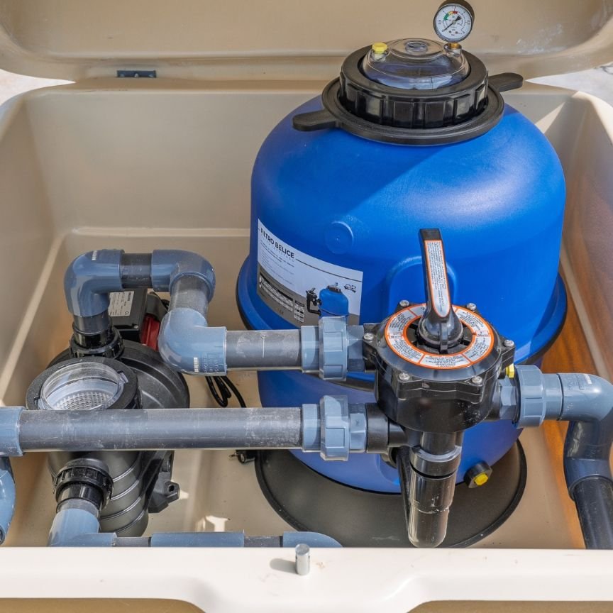 • Filtracion completa que consta de filtro y bomba montados con sus valvulas y accesorios necesarios instalados.