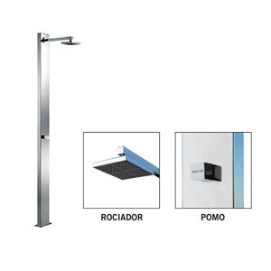 • Fabricada en acero inoxidable pulido AISI-304 con rociador cenital cuadrado y una válvula de apertura de caudal.