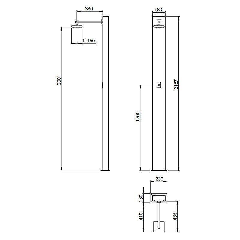 • La mejor elección para disfrutar de su ducha de exterior, sin necesidad de preocuparse por la cal, dado al sistema con prevención de cal, cuenta con un cabezal de ducha de 150 x 150 mm. Y conexión agua 1/2” BSP INT.