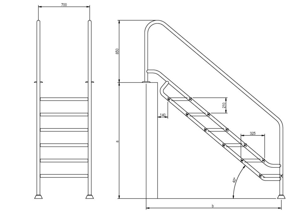| Peldaños | AISI 316L | a (mm.) | b (mm.) |