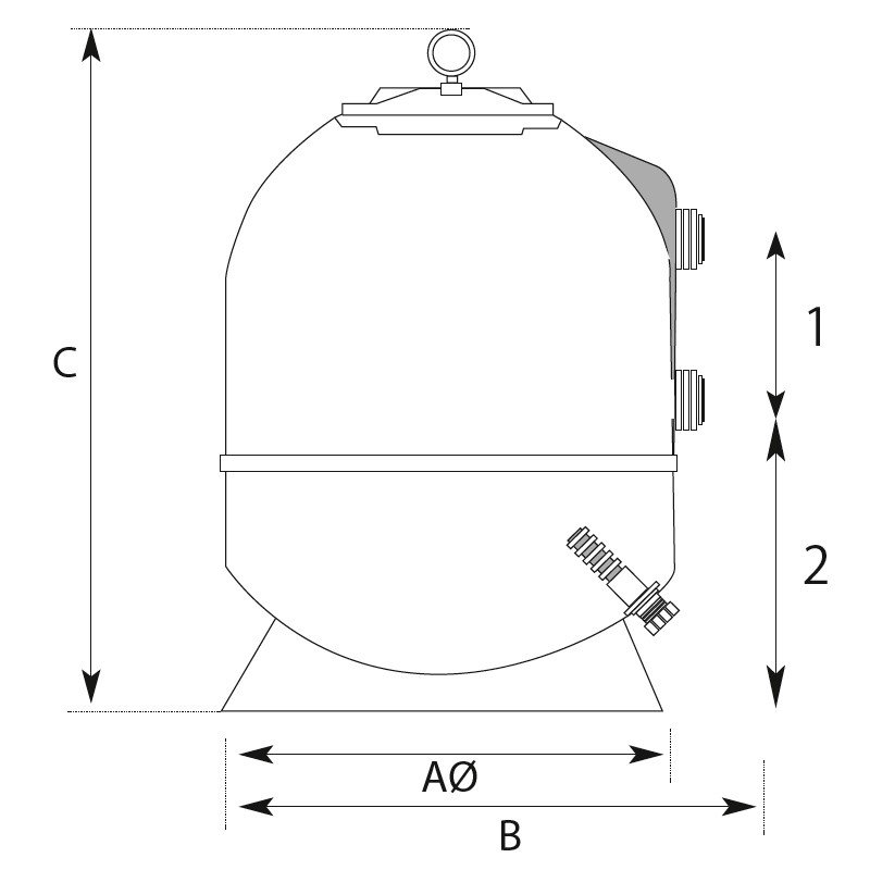 • Los filtros de Ø780 y Ø900 mm van equipados con 16 crepinas y válvula selectora de 6 vías de 2″.