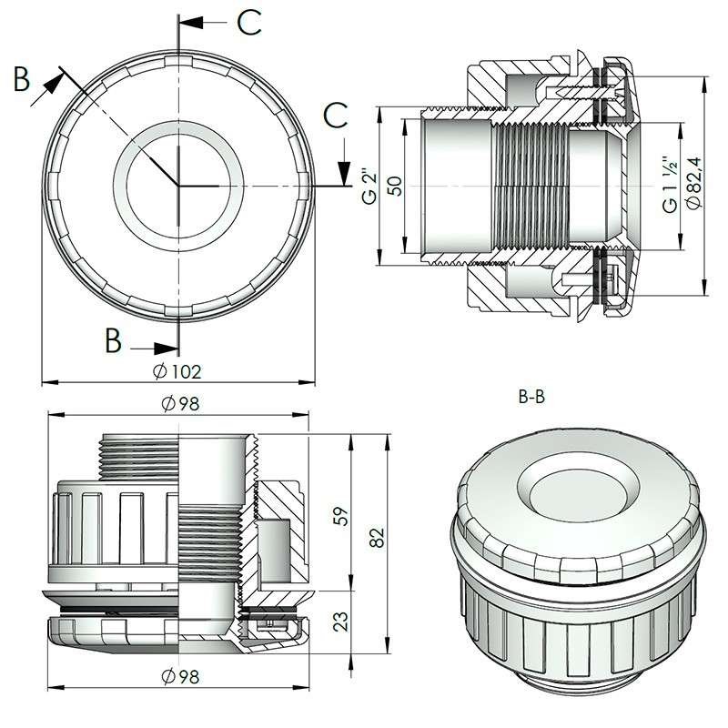• Nicho boquilla para la instalación de proyectores LED de la familia LumiPlus Mini V3 y Rapid en piscina prefabricada de liner.