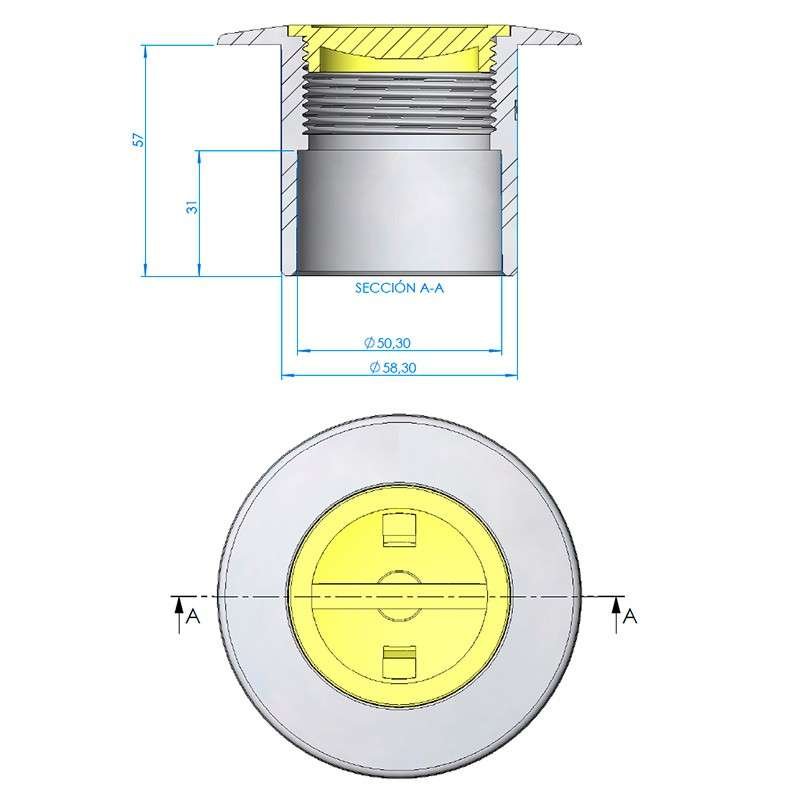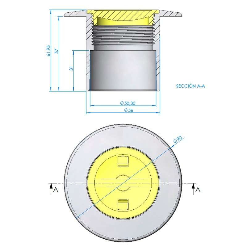 • Nicho boquilla de adaptación para la instalación de focos LumiPlus Mini V3 y Rapid encolando a tubería de Ø 63 mm (PN-6 o PN-10) en piscinas de hormigón.