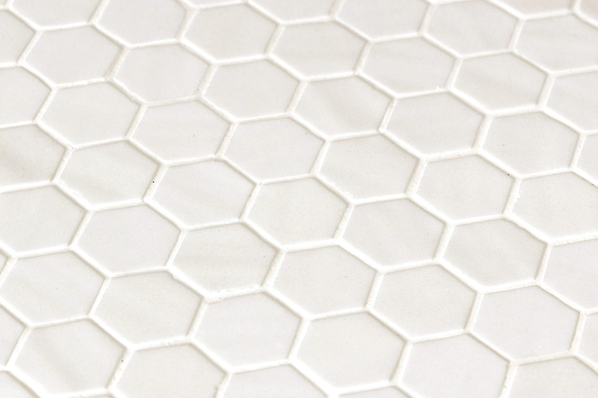El mosaico vítreo Hex Natureglass Bone Matte es un mosaico de teselas hexagonales Hex (diámetro ø 31,75 mm – 1, 25”) de color beige y acabado mate sedoso. Especificado para revestimiento también en zonas húmedas y suelos residenciales.