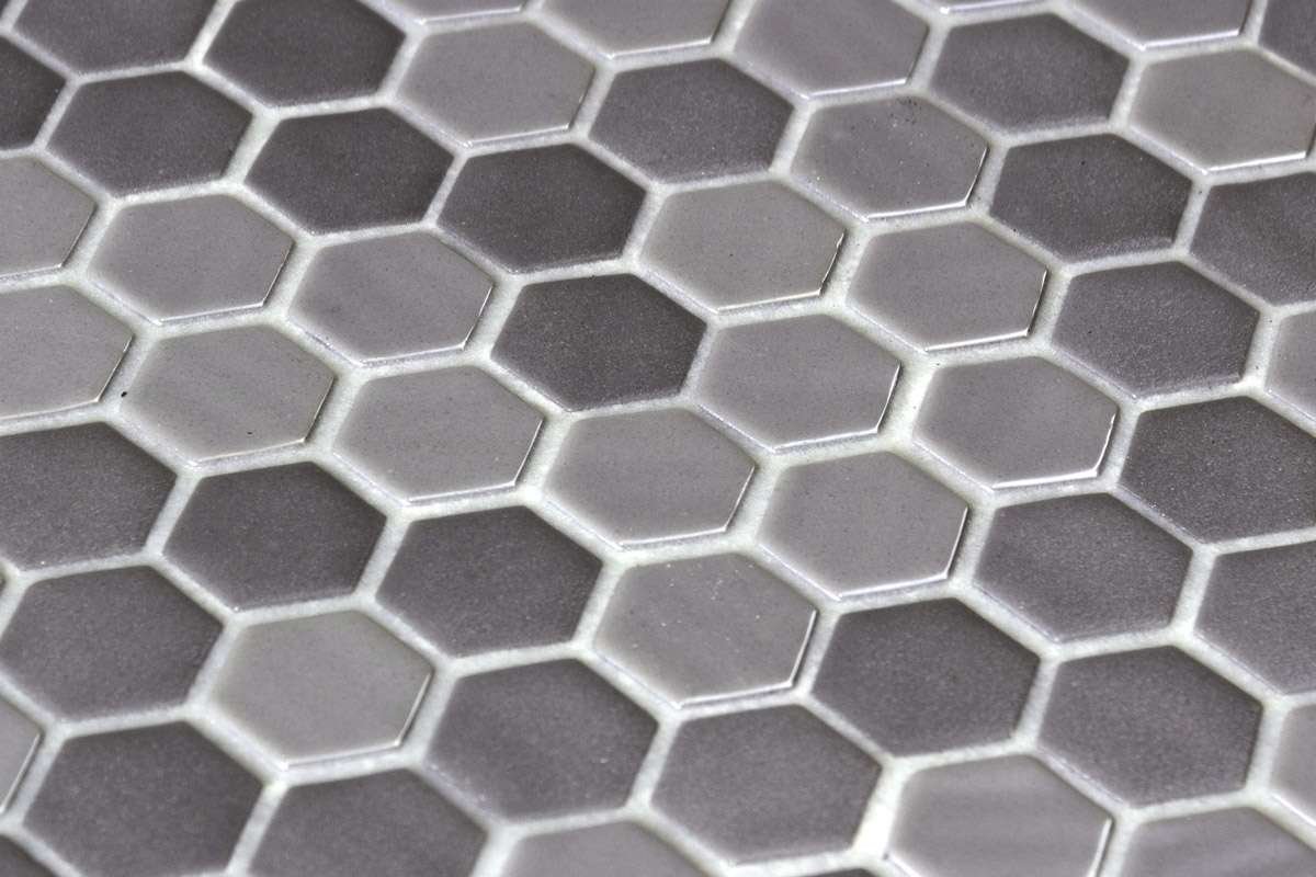 El mosaico vítreo Hex Stoneglass Opalo Grey es un mosaico de teselas hexagonales Hex (diámetro ø 31,75 mm – 1, 25”) de color gris medio que combina texturas brillo y stoneglass. Una base monocolor indicada para revestimientos decorativos.