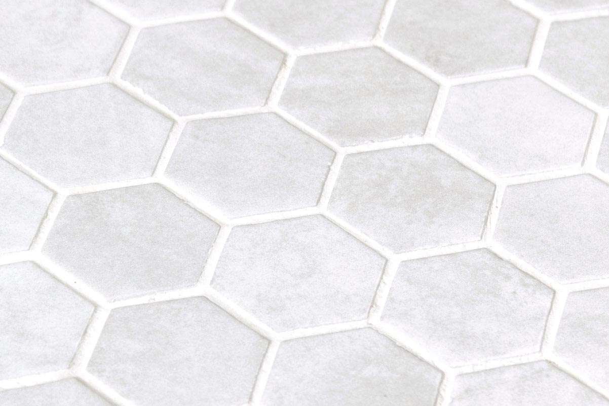 El mosaico vítreo Hex XL Zelik White es un mosaico de teselas hexagonales Hex XL (diámetro ø 51,6 mm – 2”) de color blanco roto en acabado brillo satinado y aspecto sencillo de inspiración artesanal. Idóneo para revestimientos.