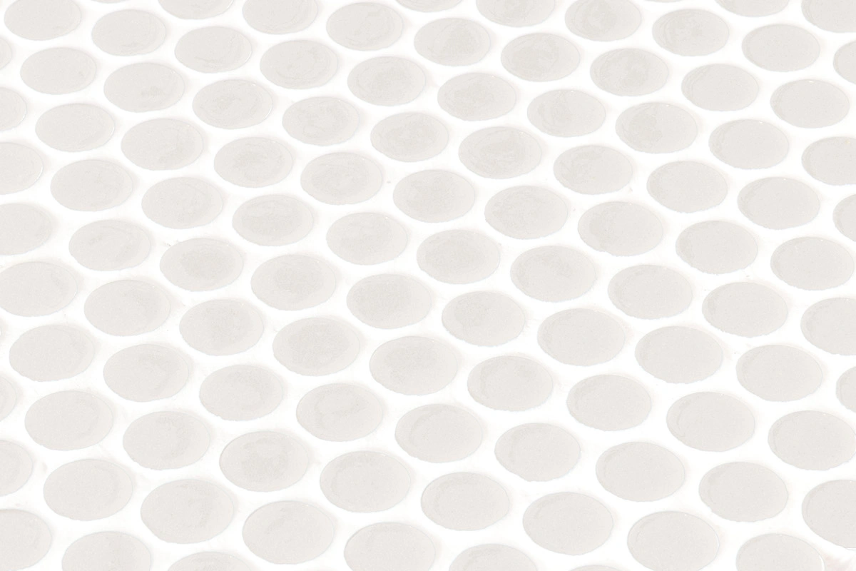 El mosaico Penny Bone Shiny es un mosaico de teselas circulares formato Penny (ø 19 mm – 0, 75”) de color beige claro y acabado liso brillo. Un básico para revestimientos, también en zonas húmedas, spa y piscina.