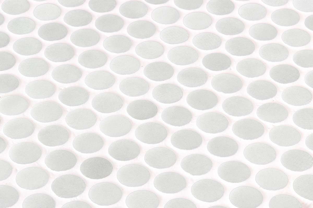 El mosaico Penny Lívia es un mosaico de teselas circulares formato Penny (ø 19 mm – 0, 75”) de color gris claro destonificado y acabado satinado con detalles decorativos de aspecto artesanal. Un producto ideal para revestimiento de paredes, zonas húmedas y pavimentos residenciales.