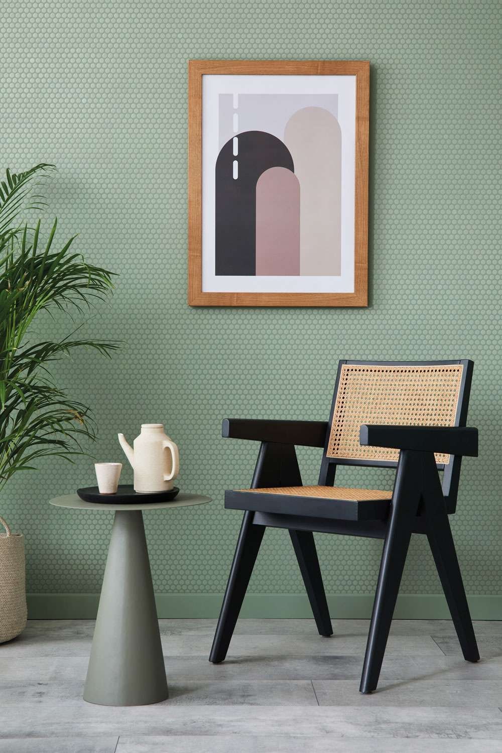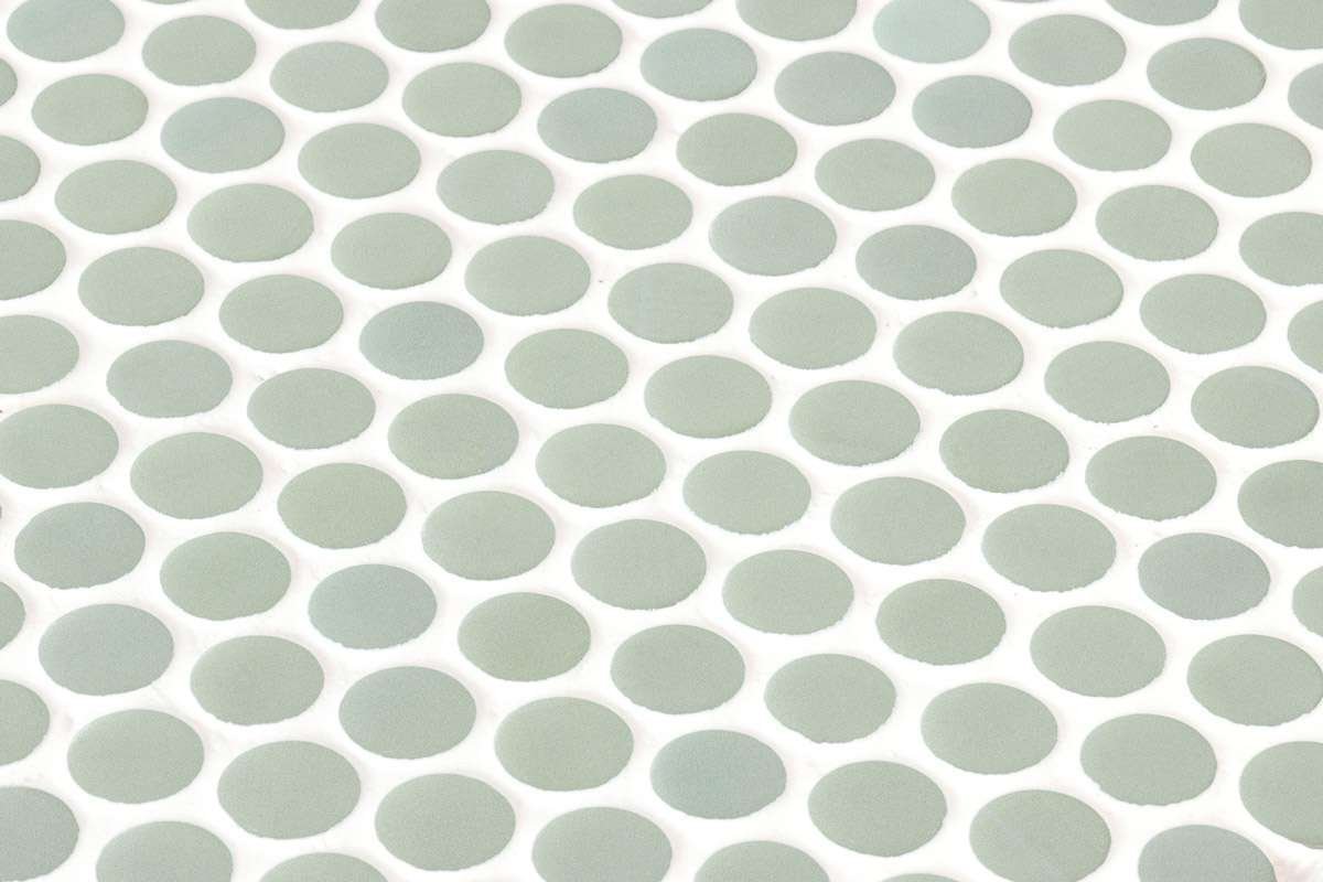 El mosaico Penny Natureglass Sage Green Matte es un mosaico de teselas circulares formato Penny (ø 19 mm – 0, 75”) de color verde claro y acabado mate antideslizante. Apto en suelos residenciales o revestimientos, también en zonas húmedas.