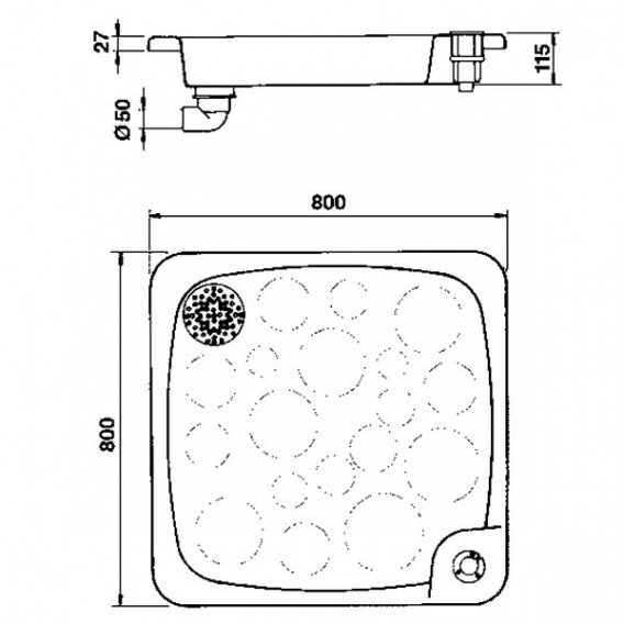 • Plato de ducha con dimensiones 80 cm x 80 cm.