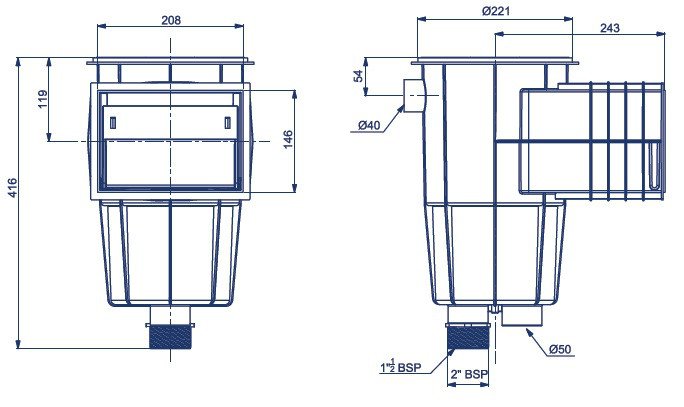• Se recomienda instalar un skimmer por cada 25 m² de superficie de lámina de agua.